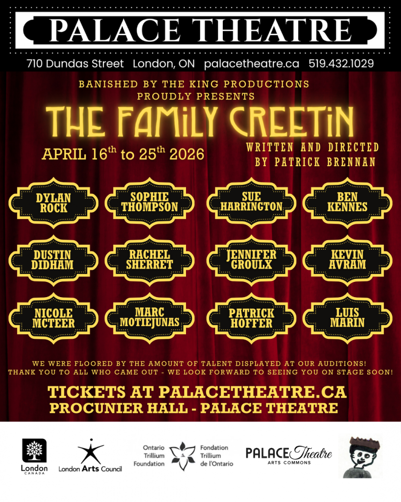 Banished By The King Productions has been creating original and unique theatre in London, Ontario since 2009. Since the initial banishment, Banished has produced eighteen original works, all written by local London, Ontario playwrights.